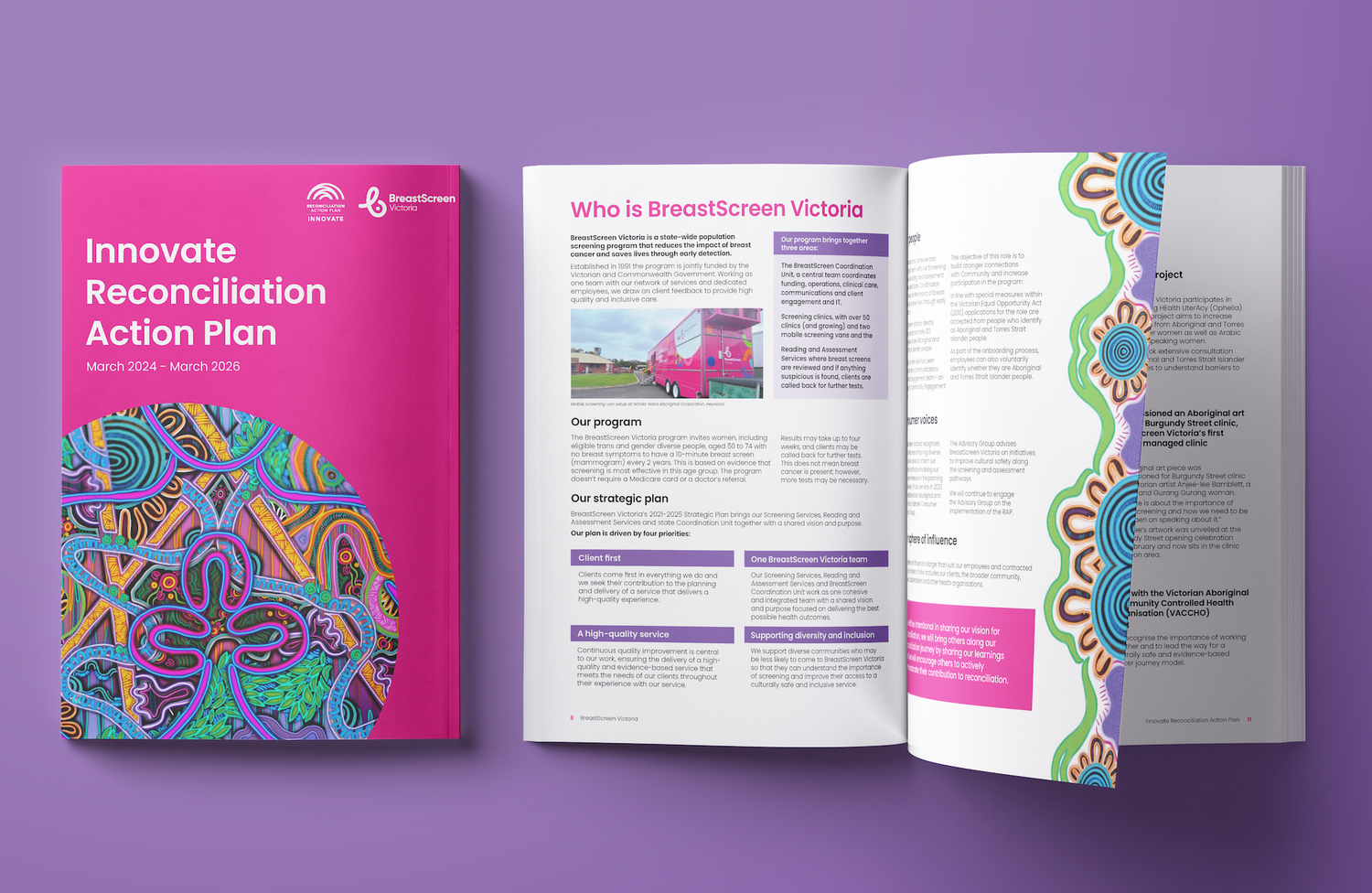Breastscreen Victoria created their first Reconciliation Action Plan (RAP) and gave Namaro Creative the opportunity to bring the artwork and information together.